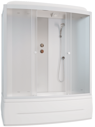 Душевая кабина "Parly", модель BNE170FR с размерами 1700*750*2150мм с высоким акриловым поддоном установленном на металлическов каркасе с регулируемыми по высоте ножками и со съёмным декоративнм экраном. Передние стёкла кабины матовые, задние стенки кабины,- закаленое белое стекло.