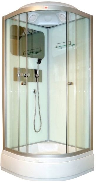 Душевая кабина "PARLY", модель ВММ86(850*850*2150мм) на среднем по высоте поддоне(h-26см) установленном металлическом(оцинковка) каркасе не подверженного коррозии. Каркас имеет все предустановленные крепления для монтажа, а также ножки, которые позволяют регулировать высоту кабины. Задние стекла кабины выполнены из белого, непрозрачного стекла. Передние,- прозрачные стекла, 4мм.
