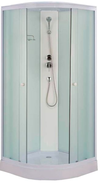 комплектация: верхний, стационарный душ с эффектом тропического ливня; ручной душ; полка для туалетных принадлежностней; 2-х режимный смеситель(латунь); слив с гофрой.
