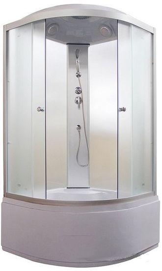 комплектация: верхний, стационарный душ с эффектом тропического ливня; ручной душ; 2-ух режимный смеситель(латунь); литое сиденье в поддоне; слив"монетка".