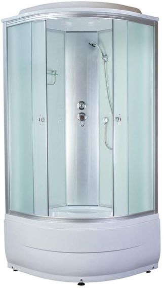 комплектация: верхний, стационарный душ(d150мм) с эффектом тропического ливня; ручной душ; полочка для туалетных принадлежностей; 2-ух режимный смеситель(латунь); двойные ролики обеспечивающие надёжную работу дверей; литое сиденье в поддоне; слив с заглушкой "Click Clak".
