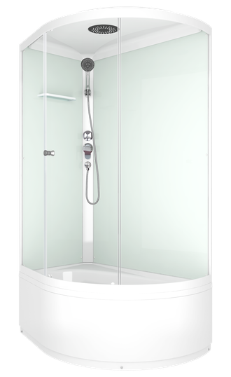 комплектация: верхний душ с эффектом тропического ливня; ручной душ; полка для туалетных принадлежностей; 2-ух режимный смеситель(латунь); сифон с кнопочным клапаном "Glick-Glak".