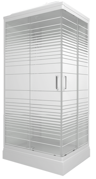 Прямоугольная душевая кабина Тритон, арт. "Квадро NEW" L/R (1000*800*228mm) на низком по высоте (h 17cм) акриловом поддоне с регулируемыми по высоте ножками. Глубина поддона 6,5см. Ширина дверного проема 51см. Внутренняя высота кабины,- 209см. Рисунок травмобезопасного стекла,-"Полосы".