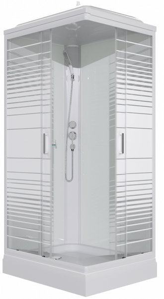 Прямоугольная душевая кабина Тритон, арт. "Квадро А" L/R (1200*800*228mm) на низком по высоте (h 17cм) акриловом поддоне с регулируемыми по высоте ножками. Глубина поддона 6,5см. Ширина дверного проема 51см. Внутренняя высота кабины,- 209см. Рисунок травмобезопасного стекла,-"Полосы".